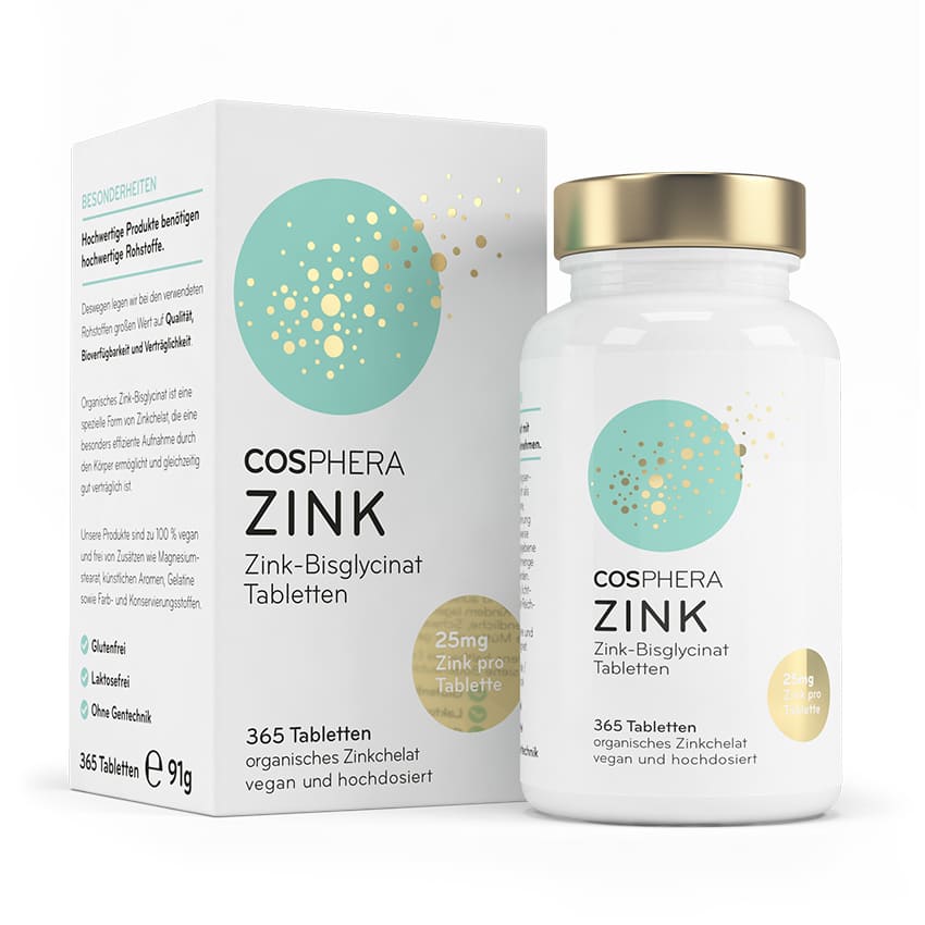 Zink-Bisglycinat in pharmazeutischer Qualität mit 25 mg elementarem Zink pro Tablette. 365 Tabletten Jahresvorrat. Markenrohstoff, GMP-, ISO-9001- und HACCP-zertifizierte Produktion. Vegan, hergestellt in Deutschland. Hoher Preis pro Tagesdosis im Vergleich.