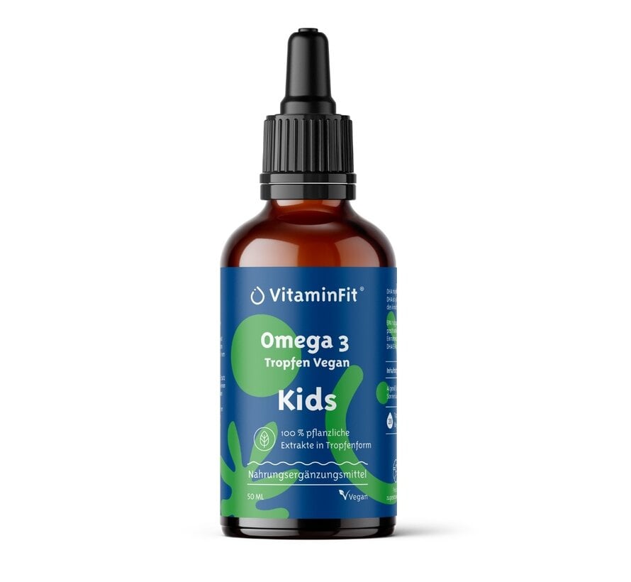 Veganes Omega-3-Algenöl für Kinder ab 2 Jahren. Enthält 250 mg DHA und 100 mg EPA pro Tagesdosis (24 Tropfen). HACCP-zertifizierte Produktion, GMO-frei. Mit natürlichem Vitamin E (Tocopherole) als Antioxidans und ätherischem Zitronenöl. In 50 ml oder 100 ml Flasche erhältlich. Pflanzlich und ohne künstliche Zusatzstoffe.